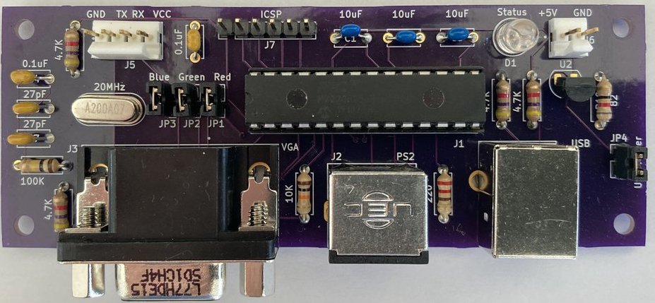 Kit includes PCB and parts to build ASCII terminal that uses conventional PS/2 keyboard and VGA screen.