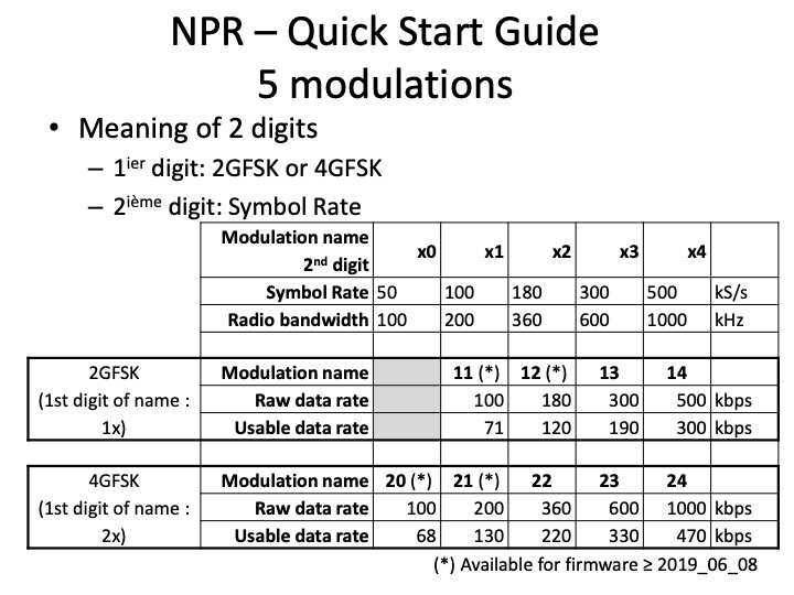 The information in your article concerning the limitations of NPR due to symbol restraints is incorrect, in order to achieve full speed (470kbps) with NPR, you need to consume an entire 1Mhz of spectral width, not 100khz, at 100khz NPR is restricted to 68kbps @ 50kSps. My source is this document https://cdn.hackaday.io/files/1640927020512128/NPR70_introduction_EN_v3.6.pdf (Just for the sake of accuracy).