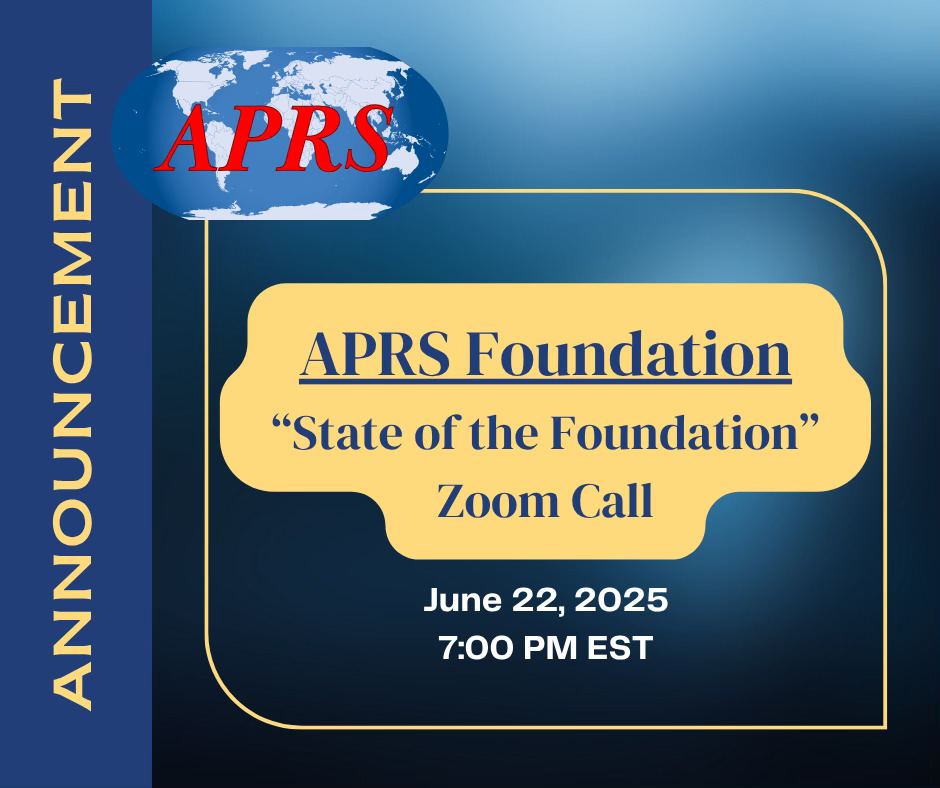 - APRS Foundation "State of the Foundation" Zoom Call on June 22nd @ 1900 (7PM) EST