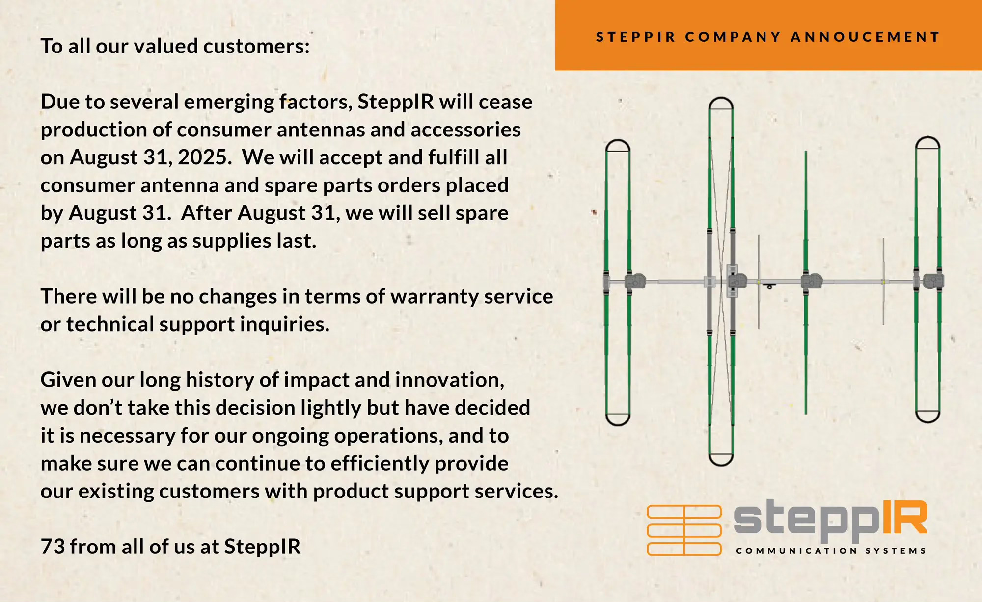 - SteppIR to Discontinue Amateur Radio Sales