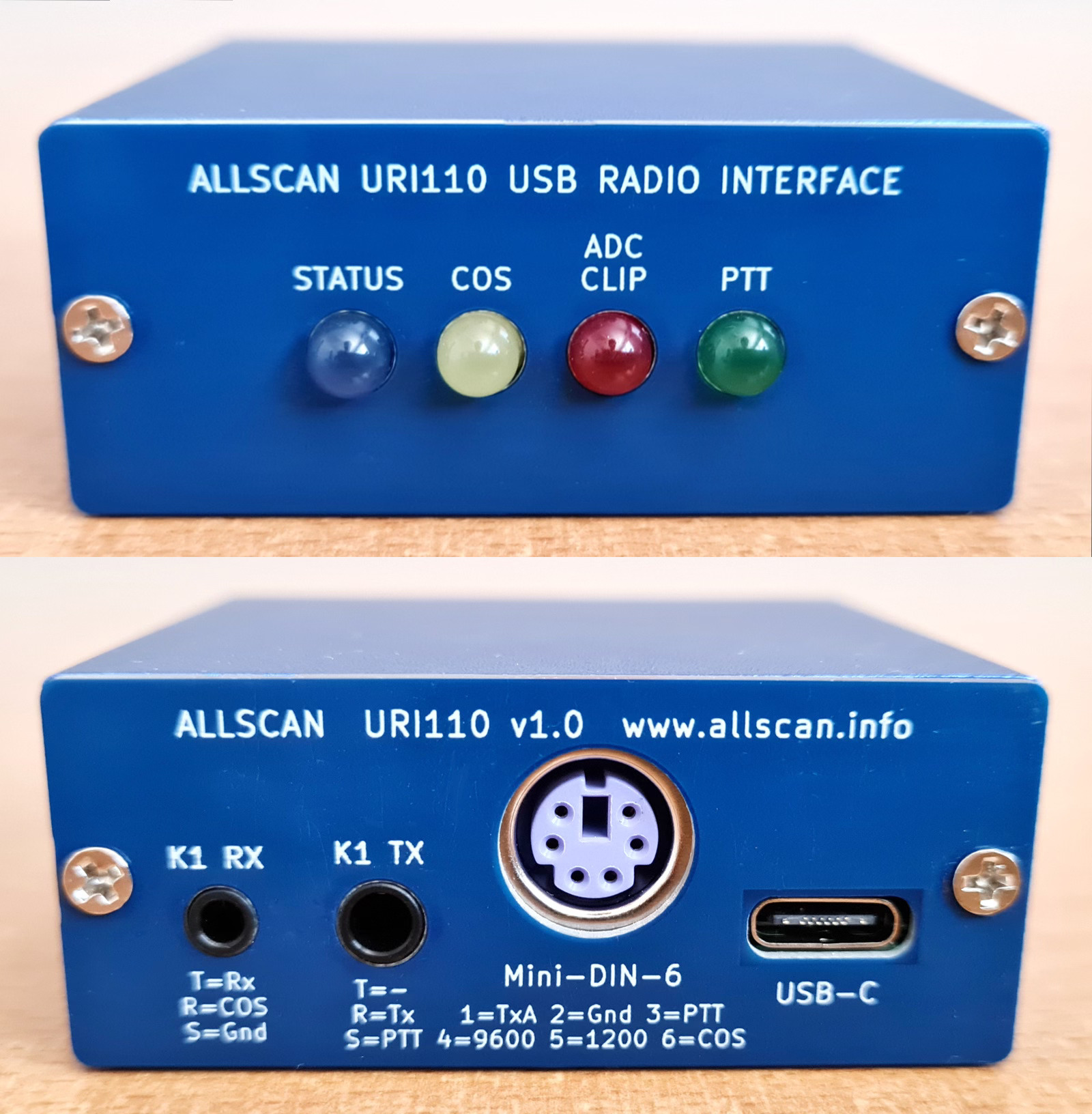 NR9V has been scrupulously careful to follow the guidelines set by C-Media (manufacturer of the USB Controller/codec IC used in nearly all URIs) on how PCBs should have separated analog and digital grounds and power supplies. Because AllScan products are often used to interface repeaters to AllStarLink NR9V conducted extensive testing and RFI optimization over many months. The result is that in high-RFI environments AllScan URIs are able to deliver a very high audio Signal-to-Noise Ratio (SNR).