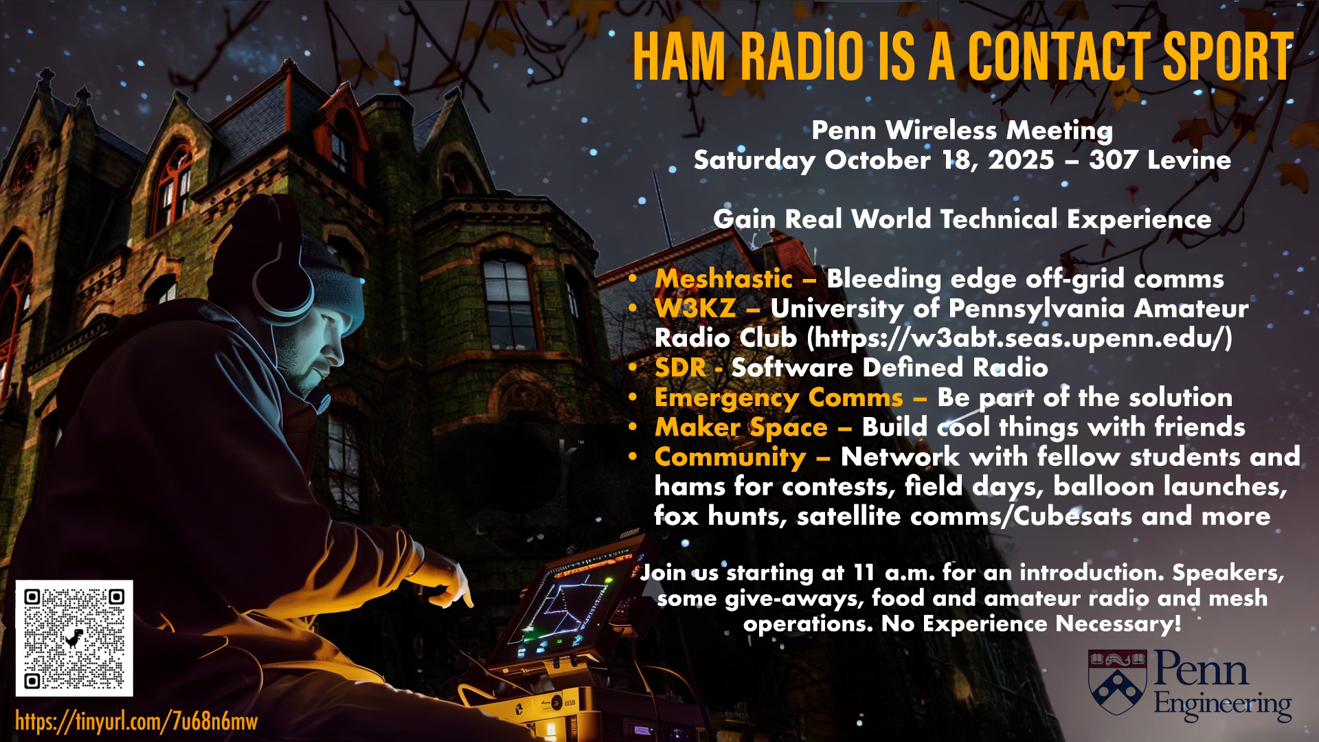 We’ll be hearing from students, alumni, WM3PEN, ARES, and Philly Mesh. We also hope to hear from you, our guests!