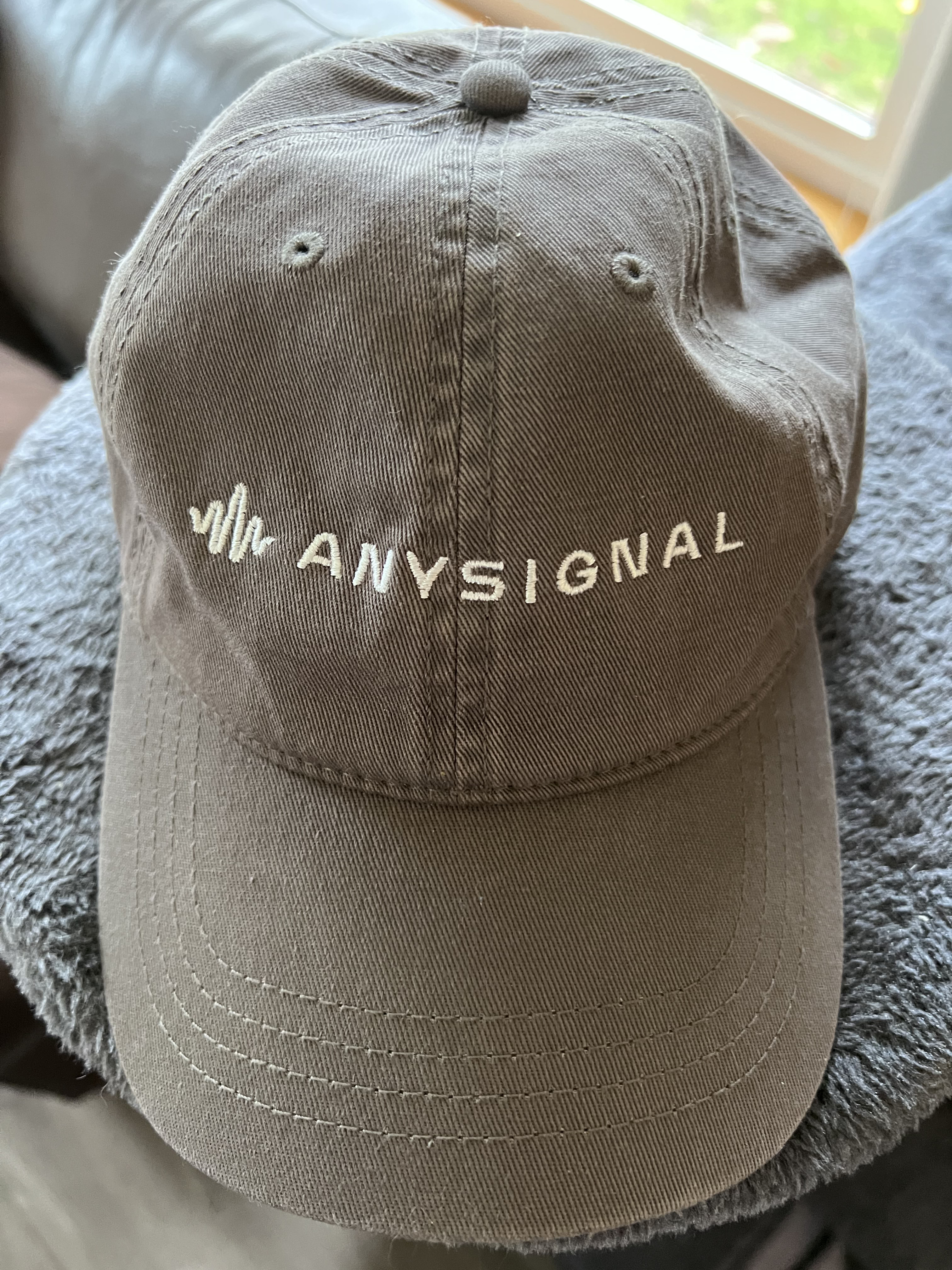 One of the savviest bits of promotion at GNU Radio Conference 2025 were the hats (shown above) given away by the company AnySignal. A handful of hats would appear on an otherwise empty table, several times per day . I now have a few of these. They’re nice quality hats, with just the company logo on them: